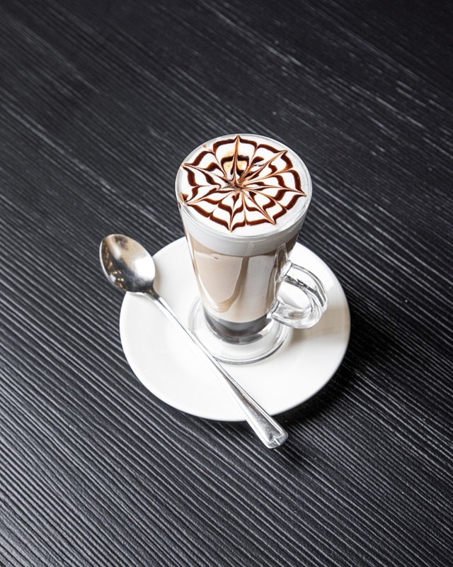 A rolled up crepe filled with pastry cream set on pistachio syrup, topped with honey and pistachio crumbs, paired with another rolled up crepe drizzled in Belgian and white chocolate, finished with a sprinkle of crushed hazelnut . Served with whipped cream on the side.