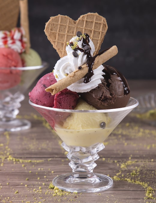 Your choice of ice cream topped with fresh cream & syrup.